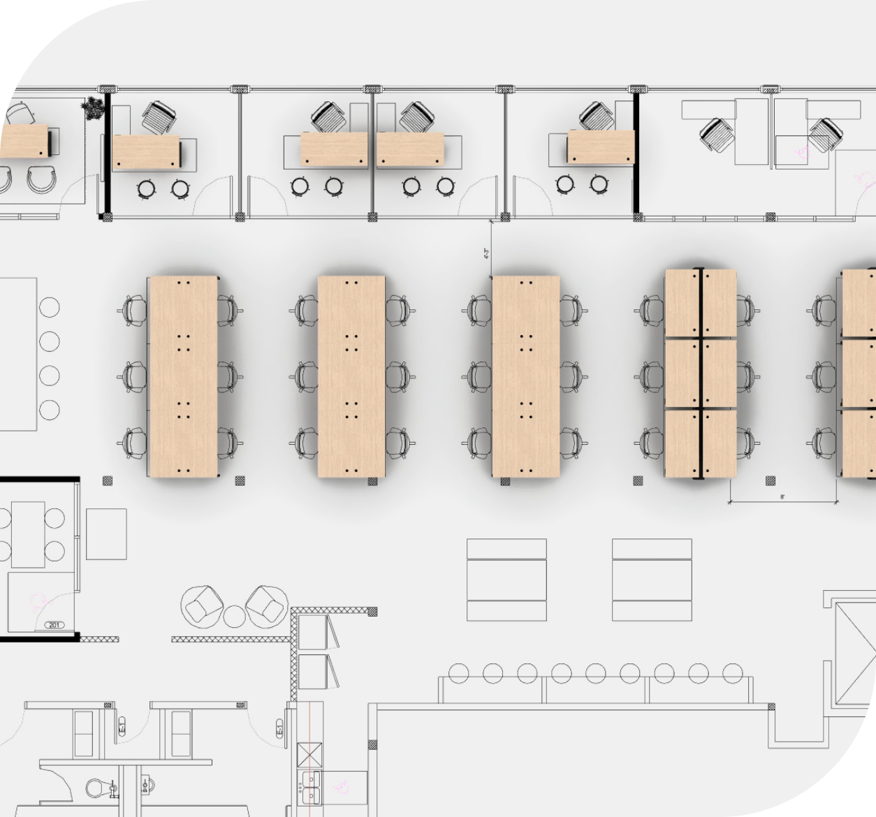 We offer photo-realistic renderings of your floor plan with our furniture solutions, helping you visualize your space.