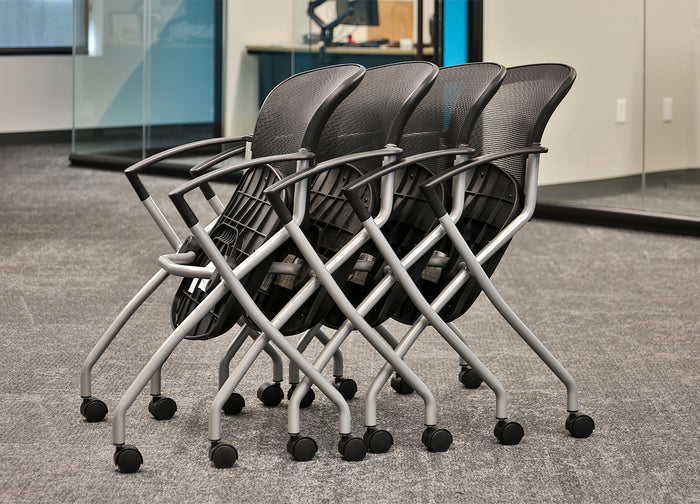 The Savent Nesting Multipurpose Chair encourages you to move about easily with its smooth casters and breathable mesh back. Big on saving space? Perfect - seat easily folds so chairs can be nested and easily stowed away when needed!